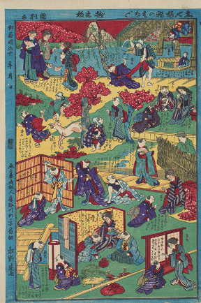天保13年(1842)、山東京山と歌川国芳によって、猫のおこまの一代記をあらわした合巻《ごうかん》(長編小説)『朧月《おぼろづき》猫《ねこ》の草紙《そうし》』が刊行され、人気をよびました。異類《いるい》(人にあらぬもの)の婚礼儀礼をつづった「嫁入物《よめいりもの》」の流れのなかに同書を位置づけながら、「おこまものがたり」の継承と広がりを明らかにしていきます。